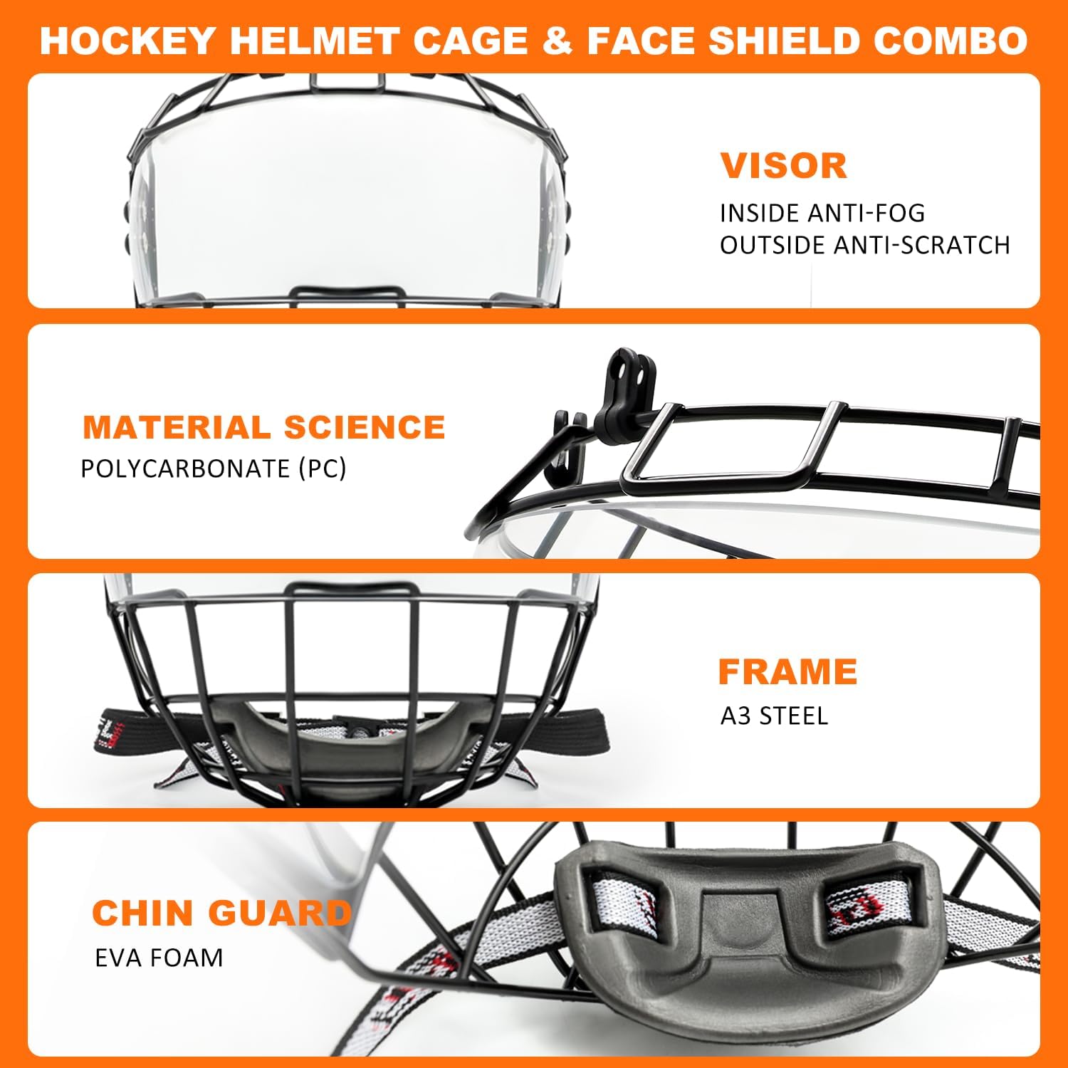 | Included Components | Hockey Helmet Cage & Face Shield Protector Combo |
